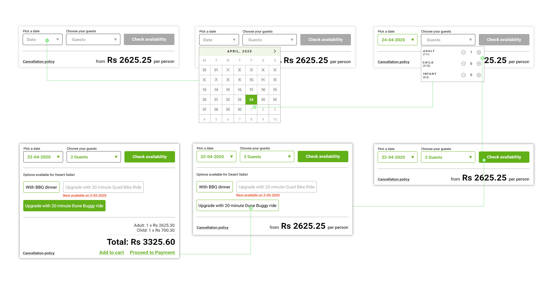 - Reduce the booking flow by allowing booking from any point on the website and minimizing information on the options window.