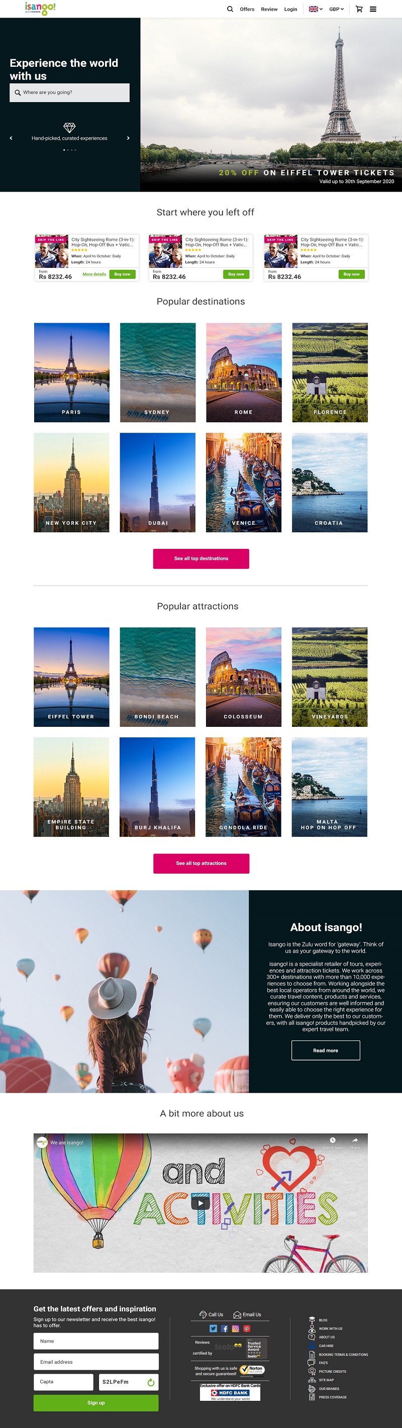 isango! is a travel e-commerce website selling tours, experiences and attraction tickets. The project was to redesign the website to improve the booking experience for the customers and incorporate the new mission and vision statement of the company through rebranding.