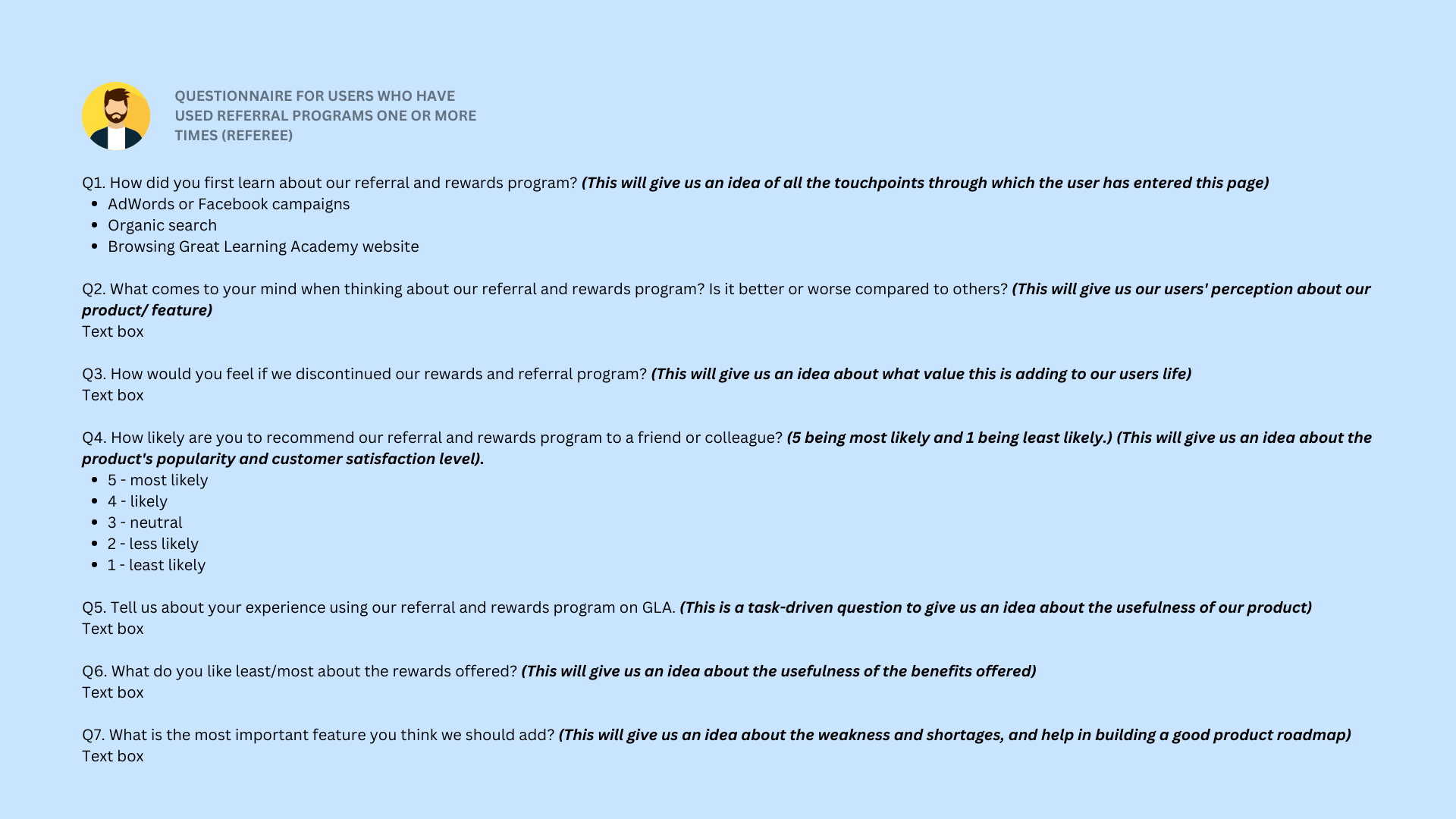 I ran two surveys, one for users who have used the referral feature and one for those who have landed on the page but left without referring someone. The goal was to understand their emotions and feelings while interacting with our interface, along with the reasons why they did or did not utilize the referral feature.