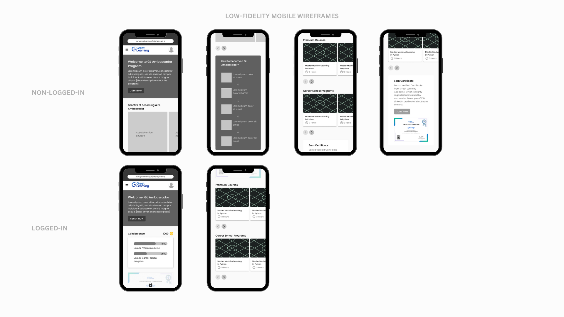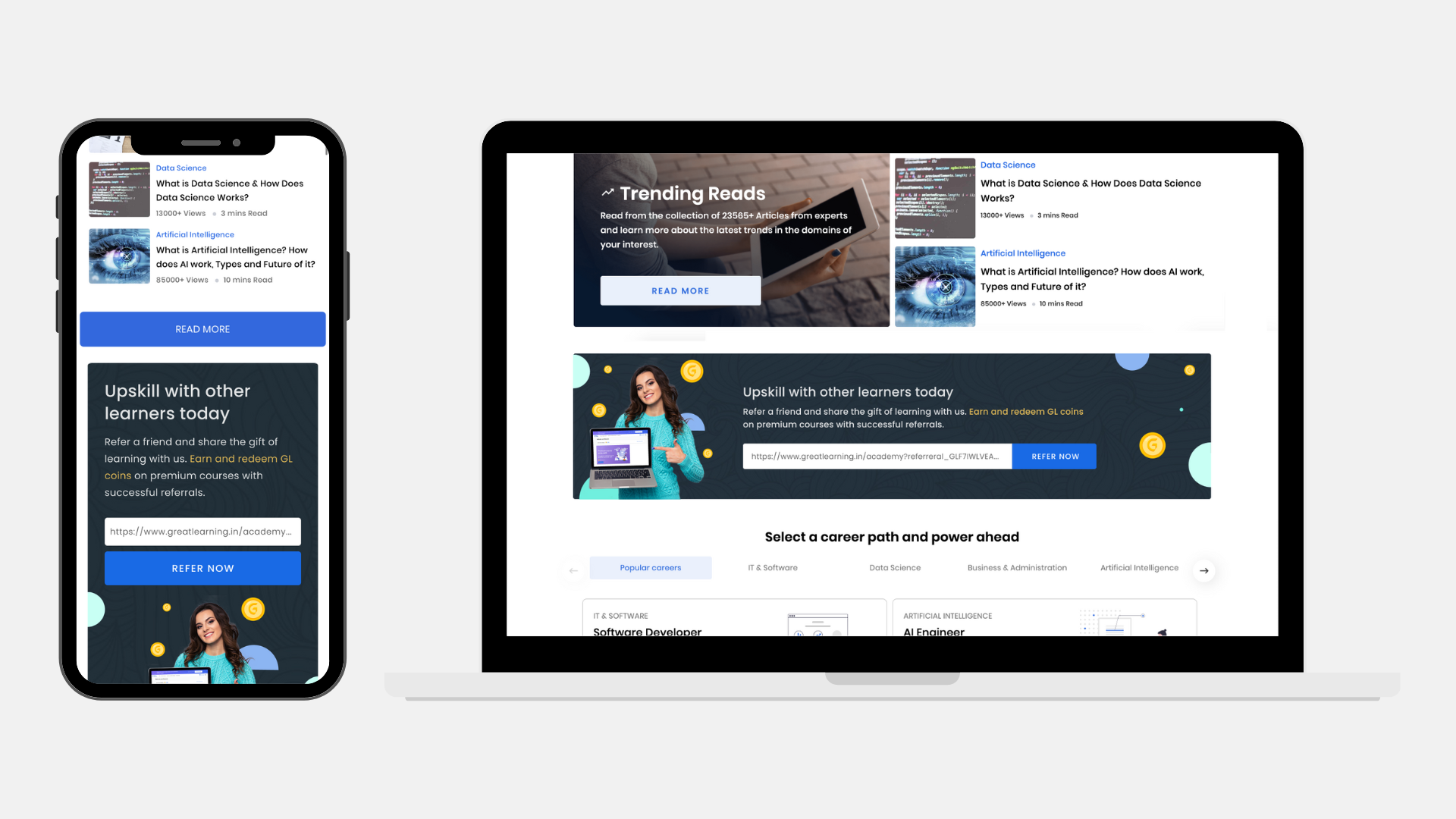 Moreover, on the referral landing page, the premium courses were not clearly visible, with only two broad categories shown and no additional information provided about the courses. I suggested to display all premium courses in a list format to enhance visibility and increase the chances of users referring a friend. Plus, this approach gave the users a better understanding of the various available courses.